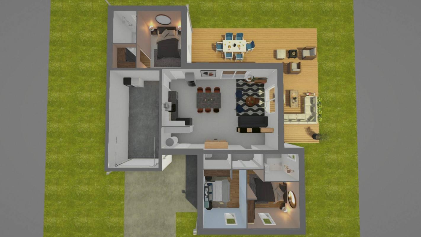 Cette maison moderne et fonctionnelle se compose de :