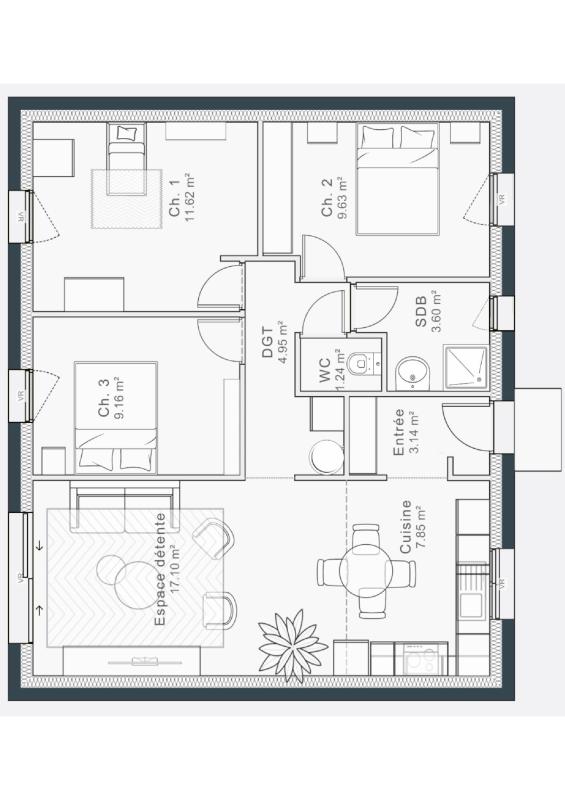 Maison pensée pour allier confort, modernité et praticité, avec une conception optimisée et des prestations conformes aux normes actuelles.