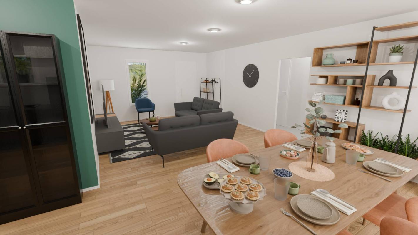 Terrain en accord avec notre partenaire foncier, sous réserve de disponibilité. Prix et visuels non contractuels. Projet conforme à la RE2020.
