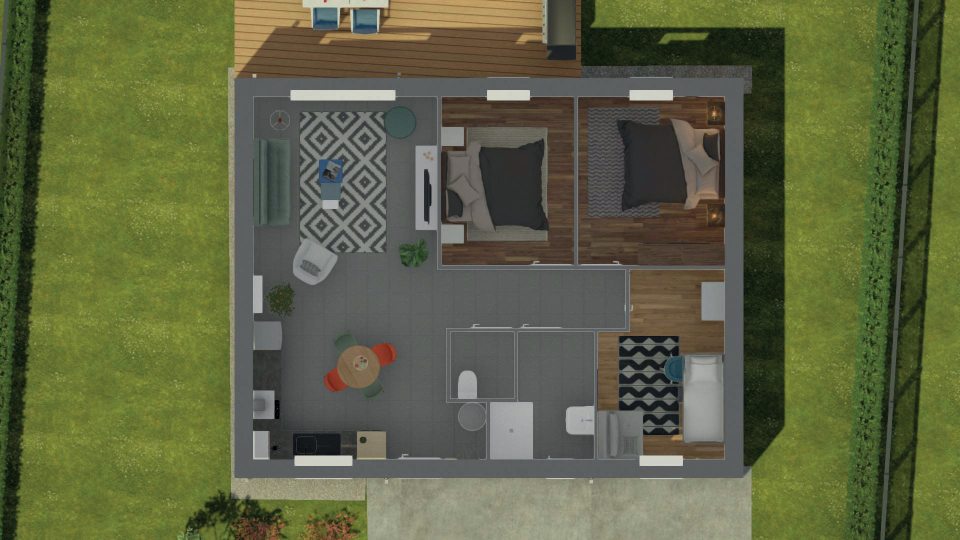 De plain-pied, elle offre trois chambres et un agencement intelligent pour faciliter chaque déplacement.