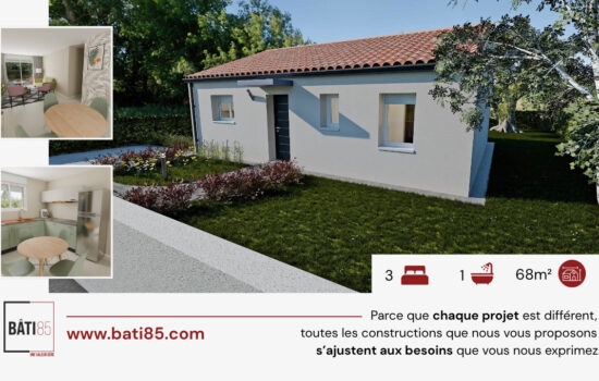 La forte implantation de BÂTI85 en Vendée et en Loire-Atlantique nous permet aujourd’hui de vous proposer de nombreuses annonces pour la construction d’une :